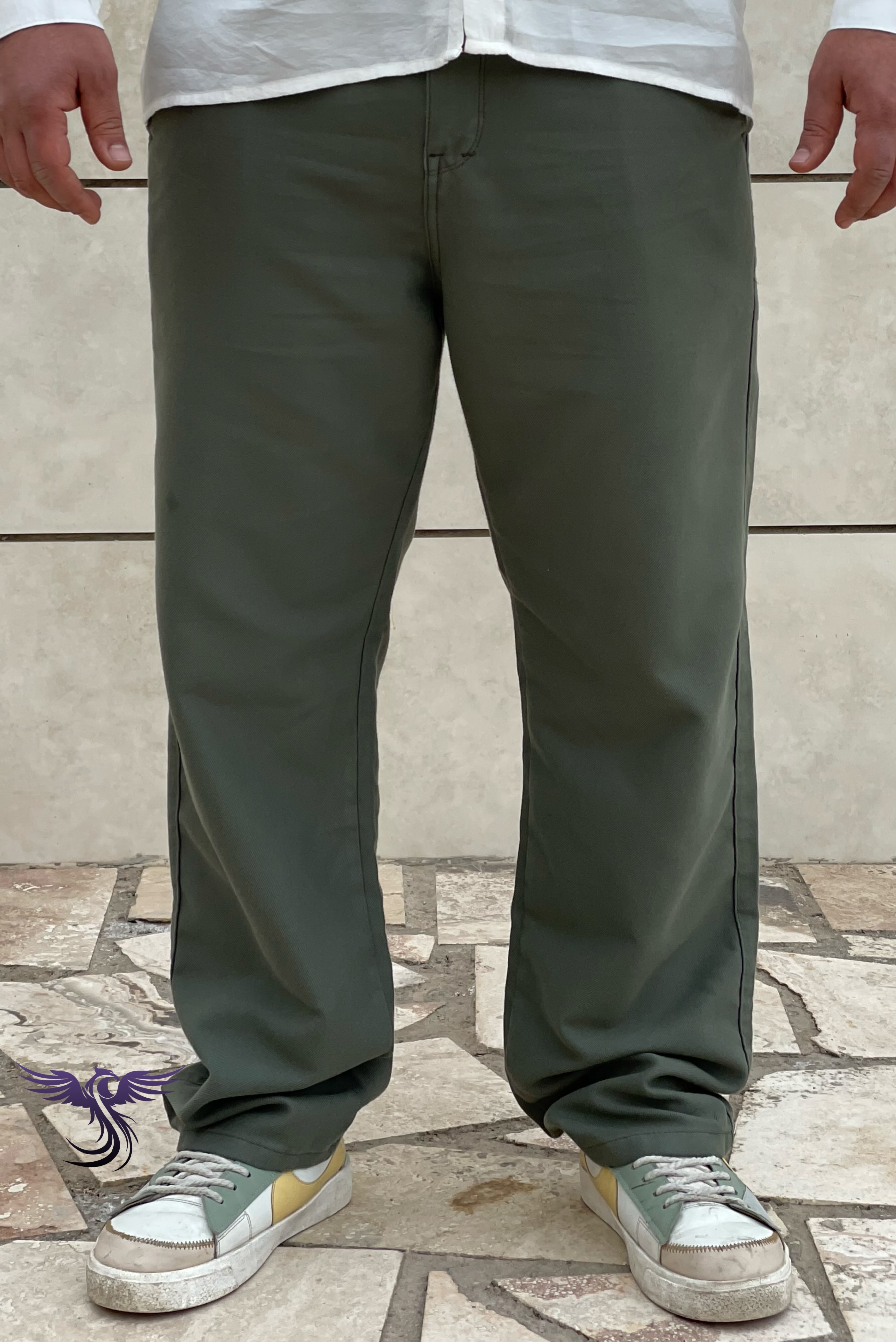 شلوار نیم بگ کتان مردانه رنگ سبز